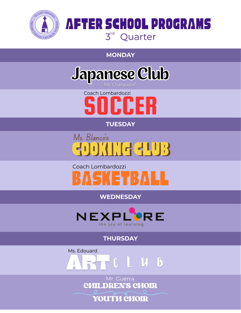 Miami Shores Presbyterian Church School sets high standards for admission. In addition to strong academic credentials, the school seeks students with high ideals and values, those who will be motivated to fulfill their potential, and those students willing and able to participate enthusiastically in its programs.